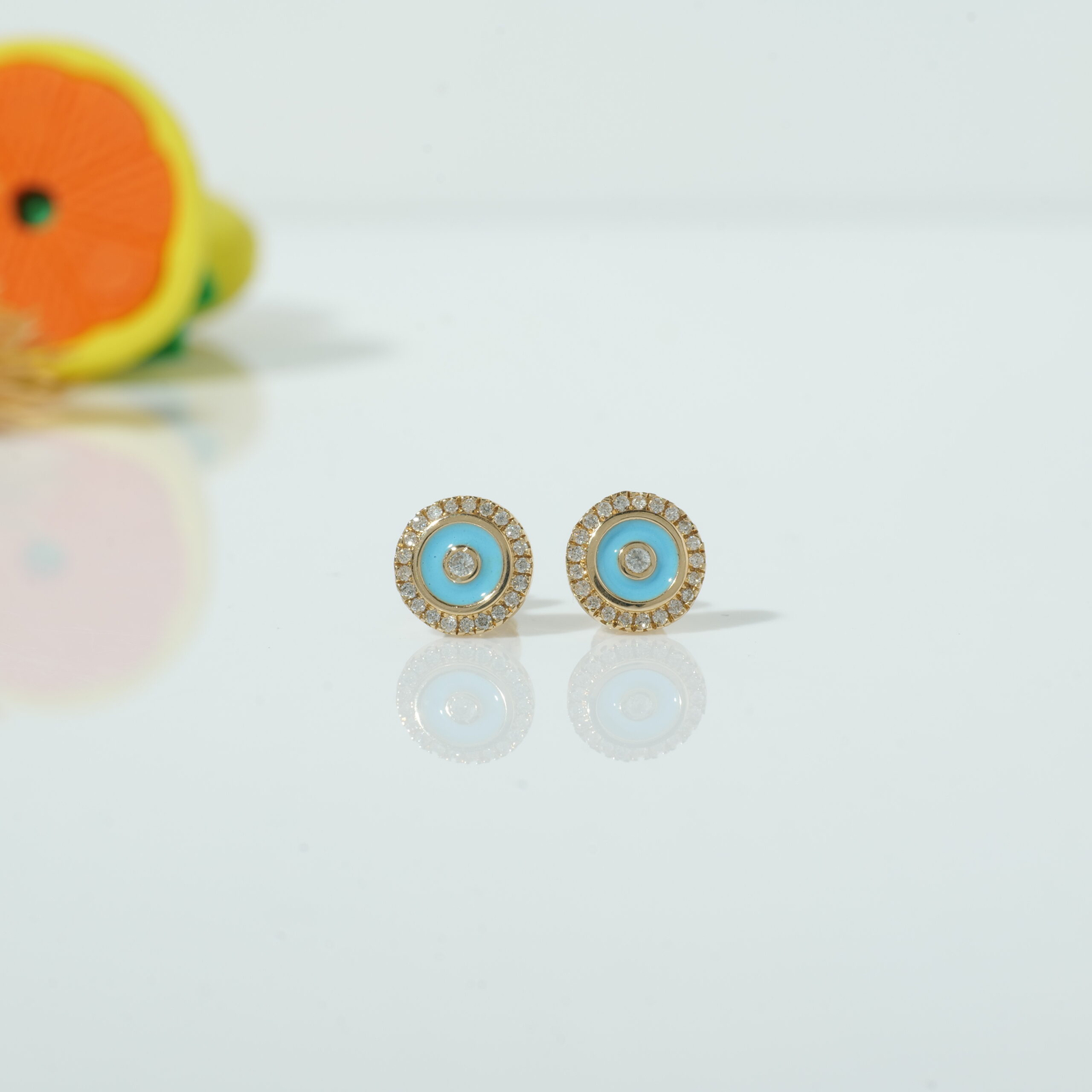These blue, evil eye-inspired earrings bring both tradition and sparkle to your child’s jewelry box. Set in 14k solid gold, the circular design features a central bezel-set diamond surrounded by soft blue enamel. A border of pavé-set natural diamonds encircles the enamel core, creating a radiant look. Made for comfort and safety, these studs come with secure screw-back closures. A meaningful gift for protection and celebration, ideal for daily wear.