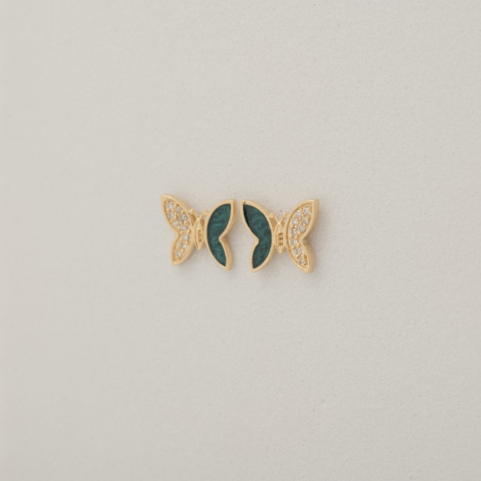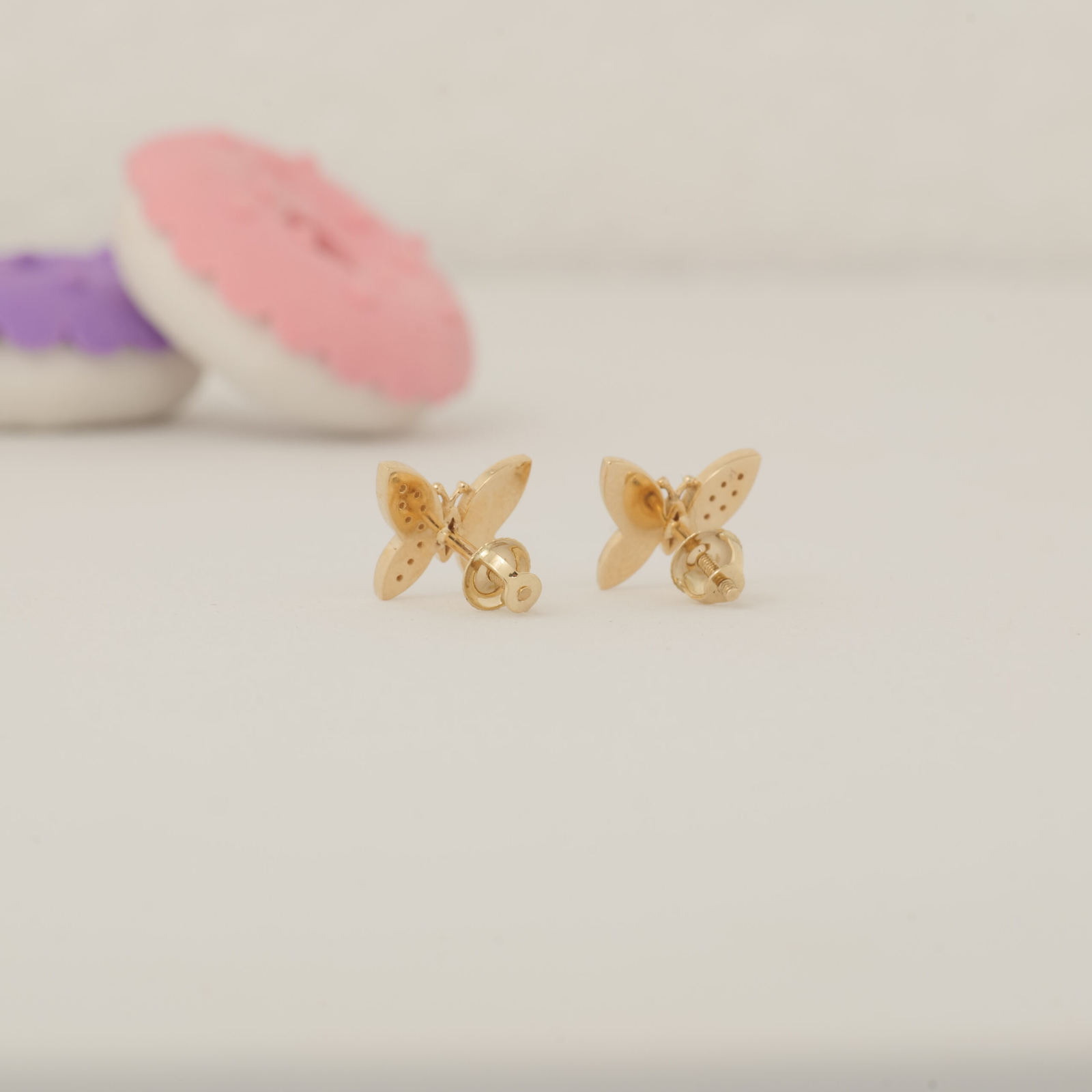 These butterfly earrings for kids feature a beautiful dual-winged design, combining the shimmer of natural diamonds on one side with a rich green enamel finish on the other. Made in 14k solid gold, this whimsical piece captures the contrast between sparkle and color, making it a charming accessory for toddlers and young girls. The secure screw-back closure ensures safe everyday wear. Ideal for birthdays, special moments, or simply bringing a touch of nature-inspired joy.
