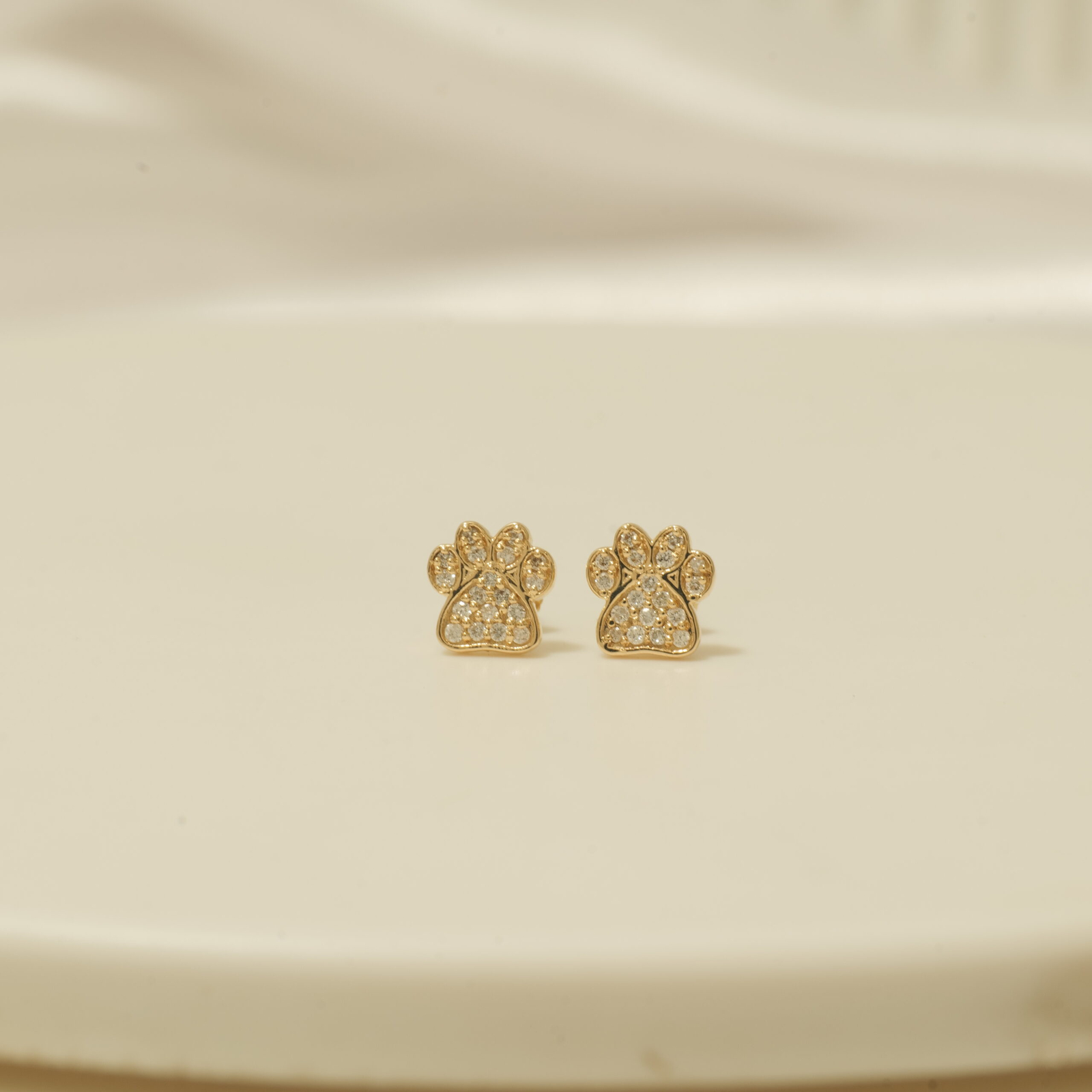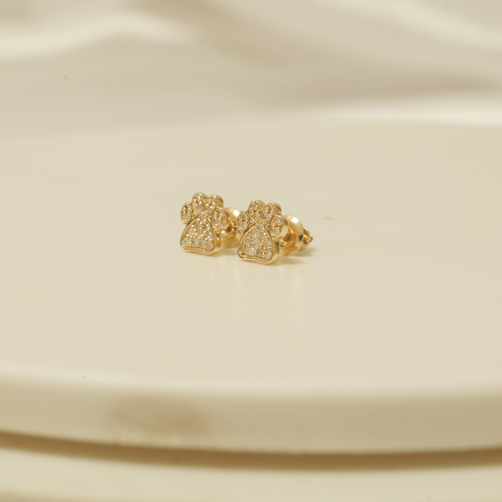 These paw print earrings are a playful nod to animal lovers of all ages, especially little ones. Crafted in 14k solid gold and set with natural diamonds, the design features four small toes and a rounded pad — each section fully accented with diamonds for sparkle and detail. Lightweight and gentle on ears, these earrings are fitted with screw-back posts for safety and comfort. A perfect gift for toddlers, young kids, or mini pet lovers.