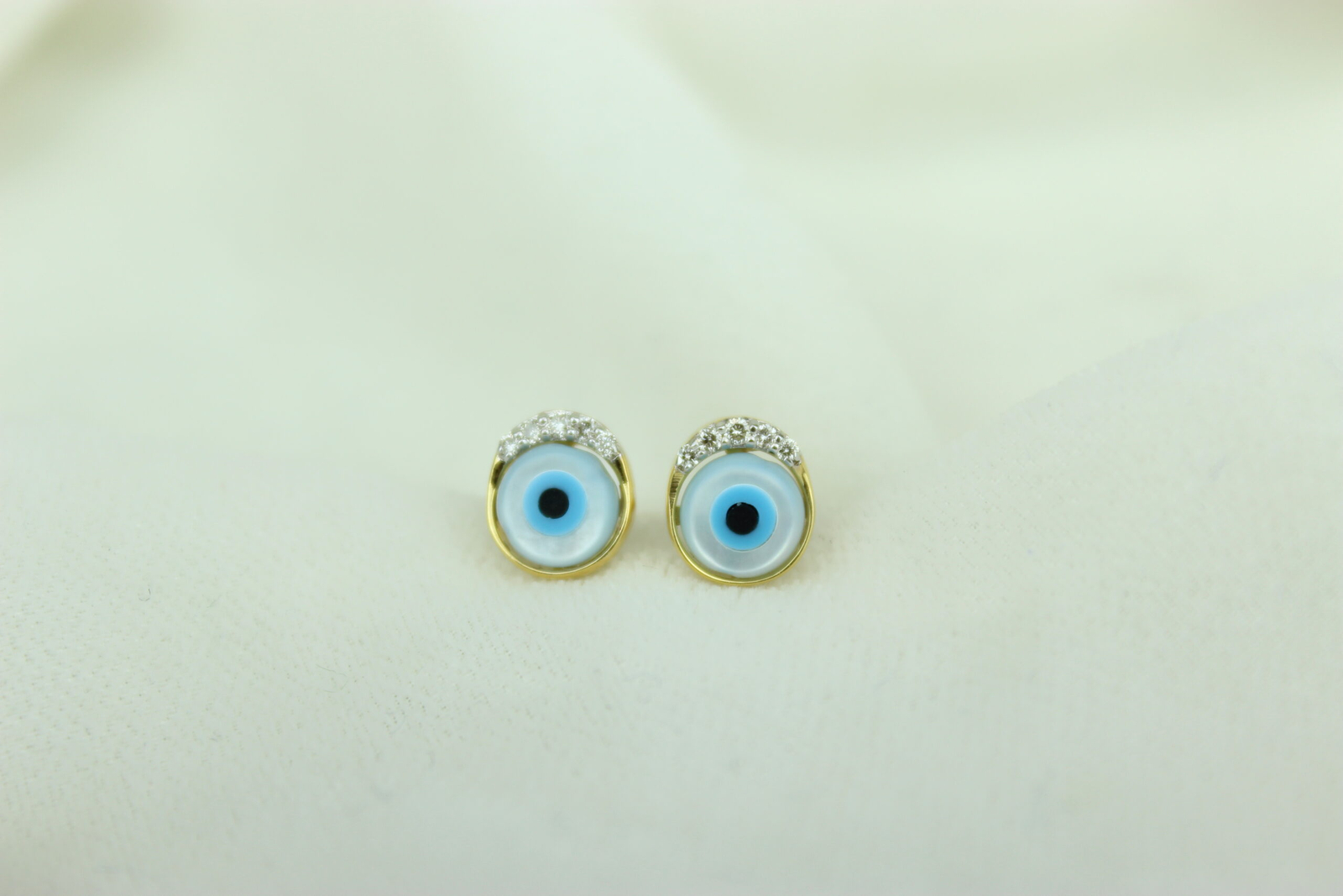 Kids’ Evil Eye Diamond Stud Earrings, 14k Solid Gold, Natural Diamonds, Kids Protection Jewelry, Gift for toddlers/girls/kids