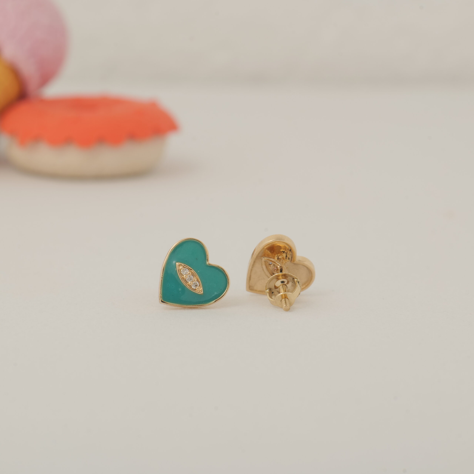 These heart-shaped earrings for kids are crafted in 14k solid gold and filled with rich green enamel. At the center of each heart lies a delicate marquise-shaped diamond cluster, adding sparkle in a clean, modern silhouette. Designed for toddlers and young girls, these earrings come with secure screw-back posts for safety and everyday comfort. A meaningful gift to celebrate love, style, and sweet moments.