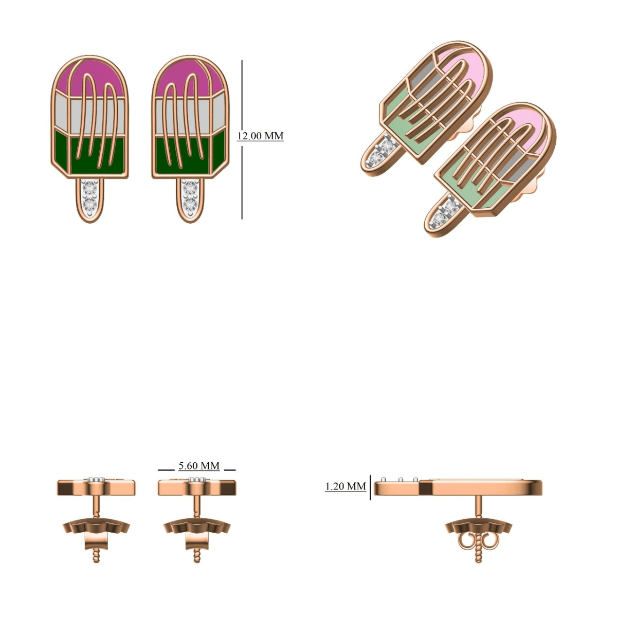 Kids Ice Cream Candy Diamond Stud Earrings, 14k Solid Gold With Enameling, Natural Diamonds, Kids Jewelry, Gift for toddlers, girls and kids