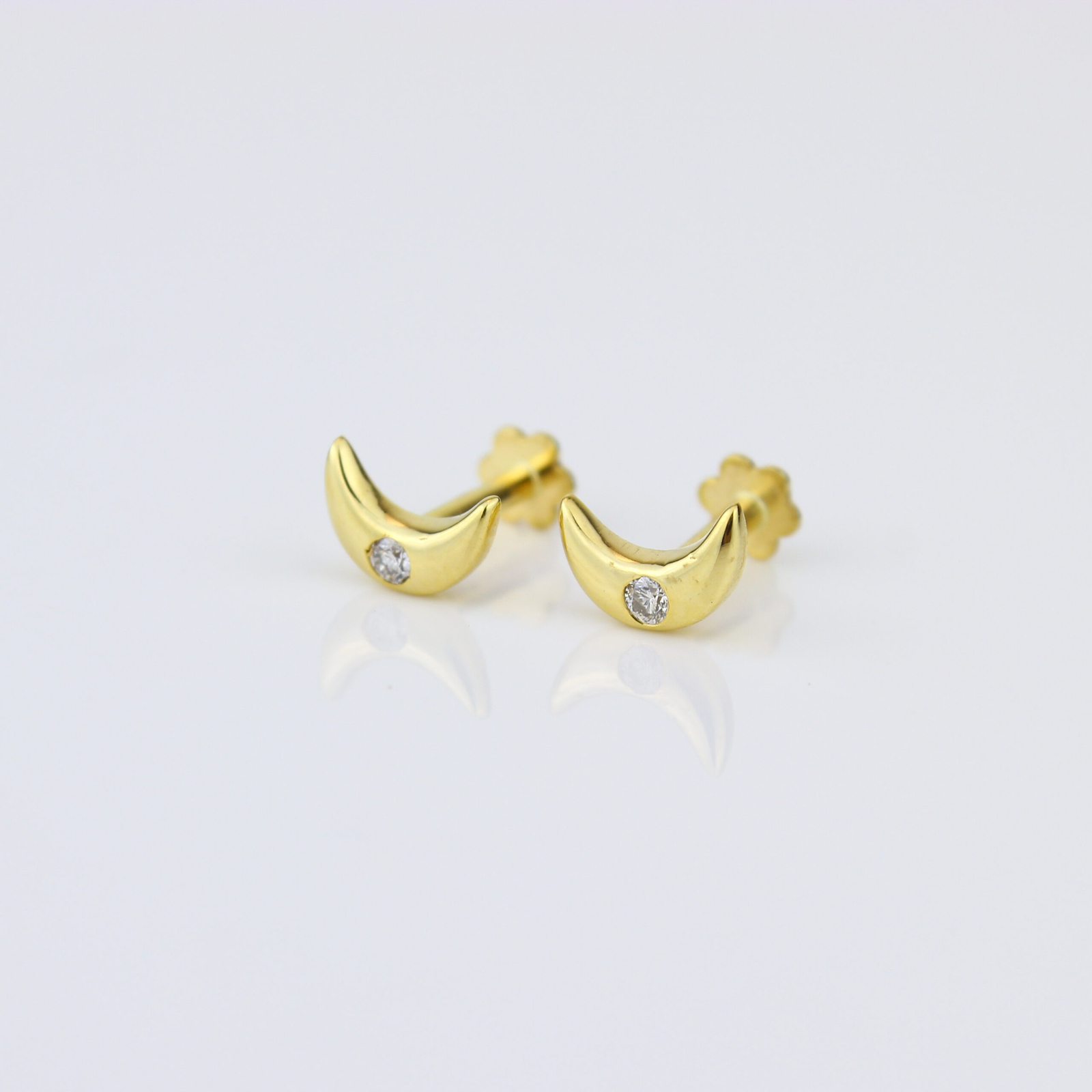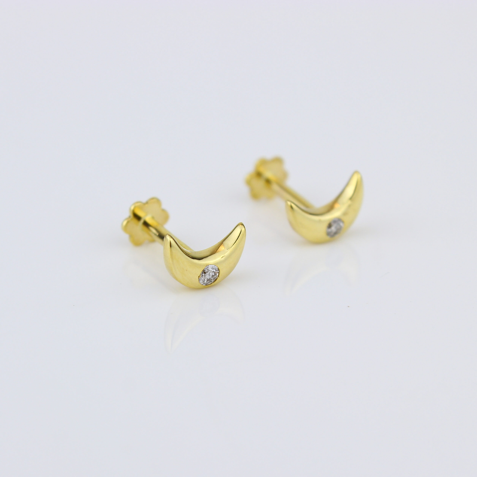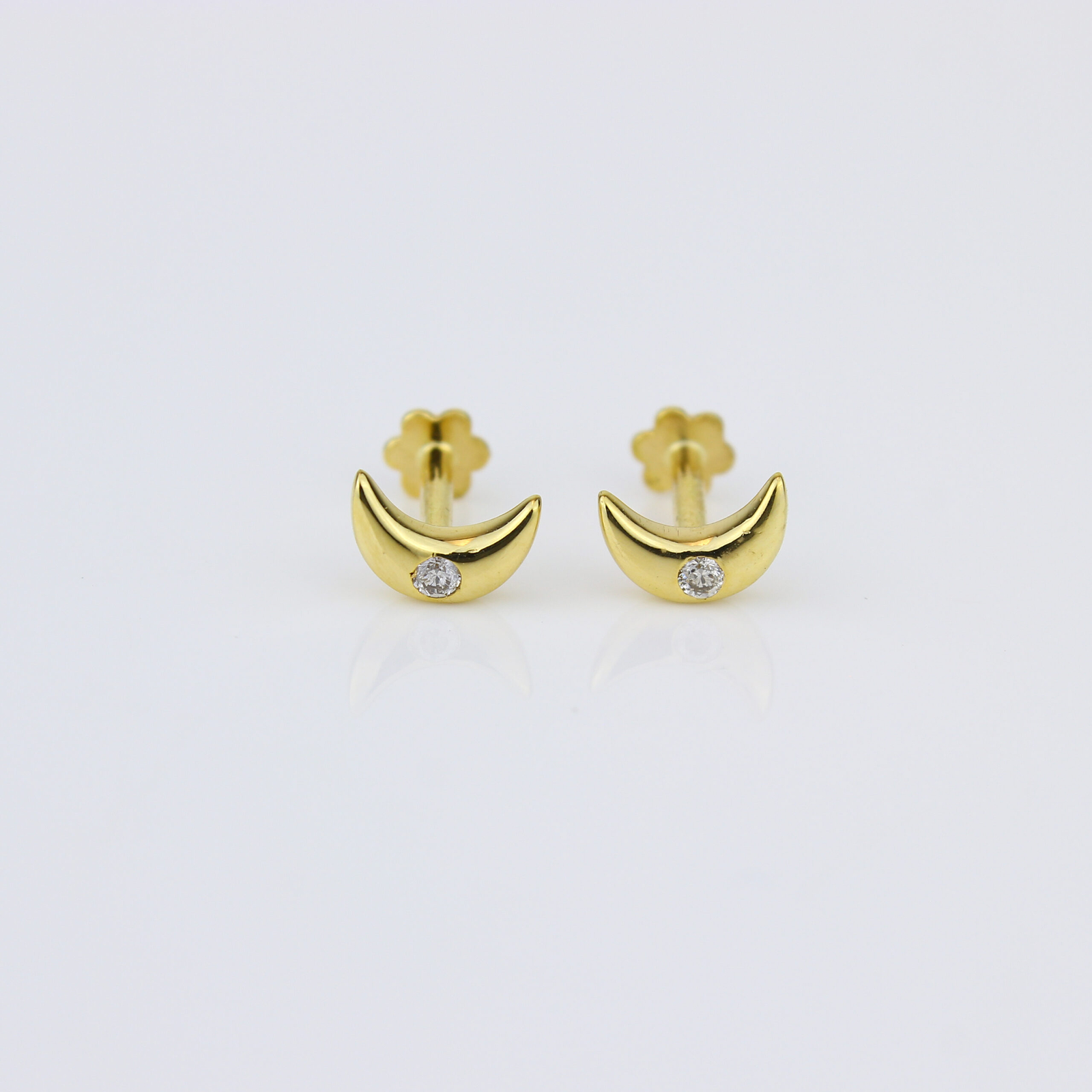 Kids Moon Diamond Stud Earrings, 14k Solid Gold, Natural Diamonds, Kids jewelry, Gift for toddlers/girls/kids, Ready To Ship