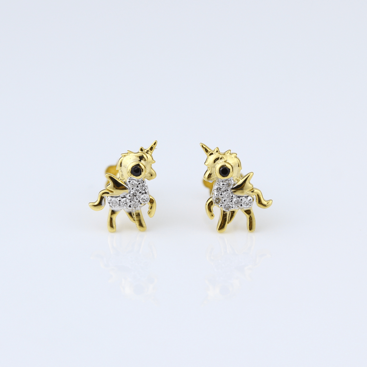 Kids Unicorn Diamond Stud Earrings, 14k Solid Gold, Natural Diamonds, Kids Jewelry, Gift for toddlers, girls, and kids Gift For Her