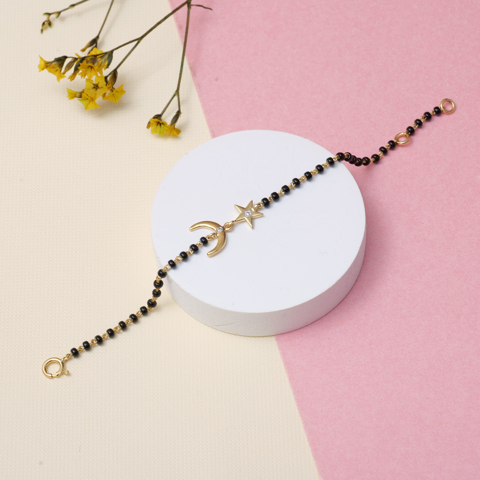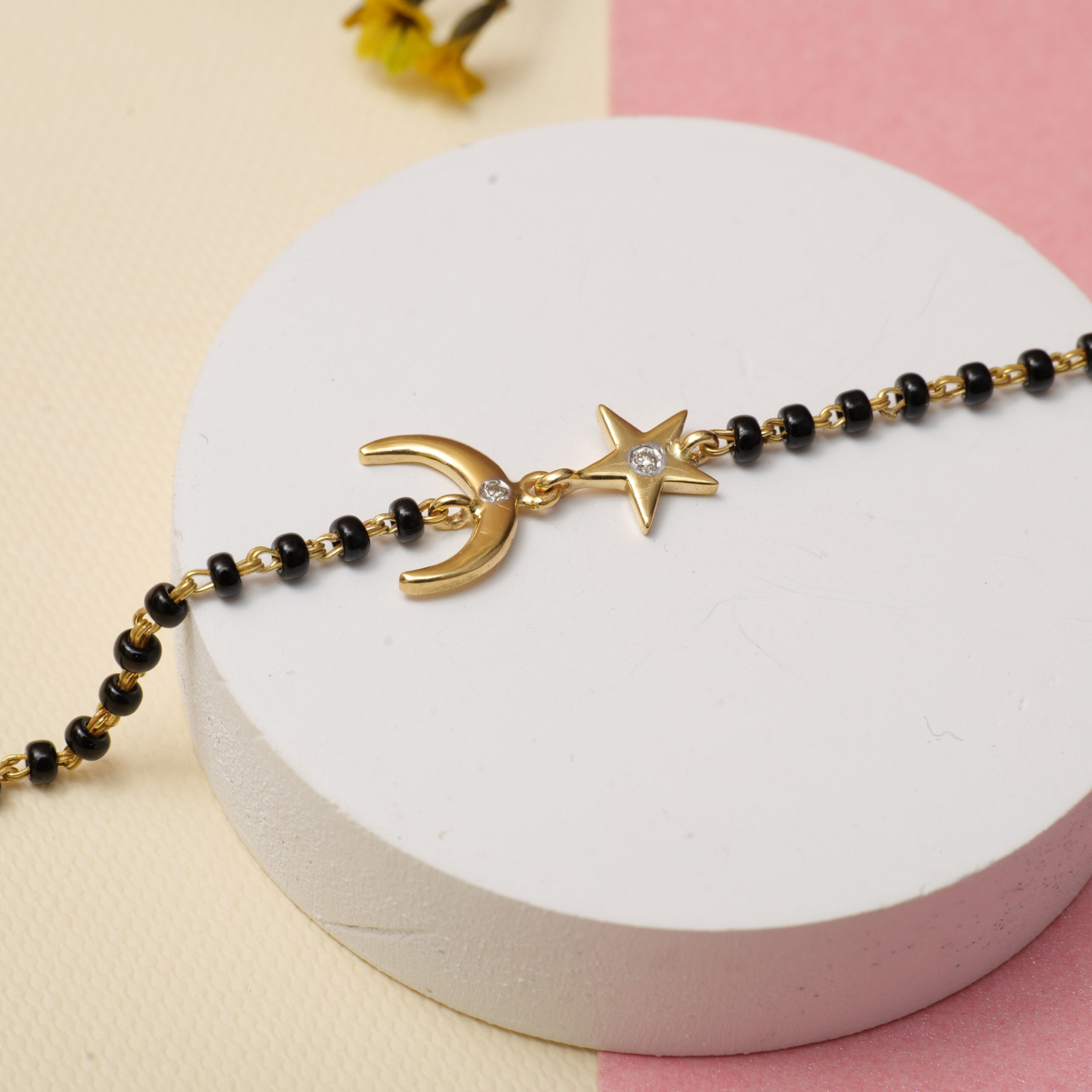 Each diamond is hand-set in secure prongs to ensure safety and long-lasting wear. (in Moon Star Nazaria) The crescent and star charms are cast in fine 14k solid gold, ensuring durability while maintaining a refined finish. The bracelet fastens with a sturdy lobster clasp for a comfortable fit. The soft black bead chain ensures a lightweight feel, making it ideal for everyday wear.